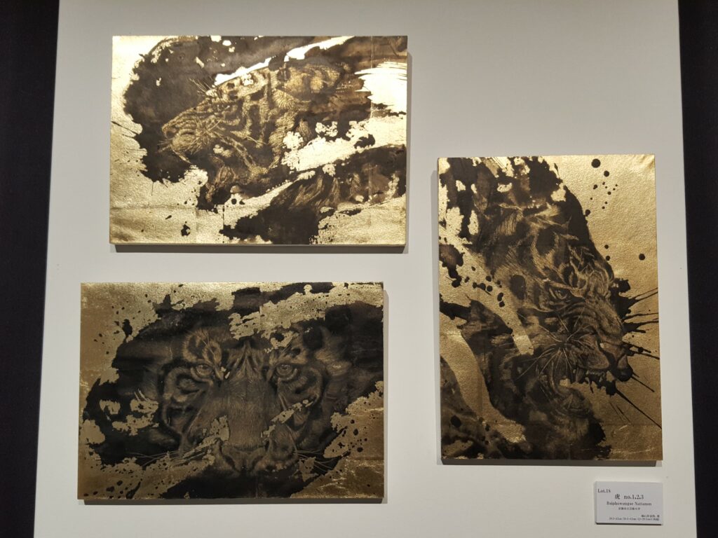 หมึกญี่ปุ่นและทองคำเปลวบนกระดาษญี่ปุ่น